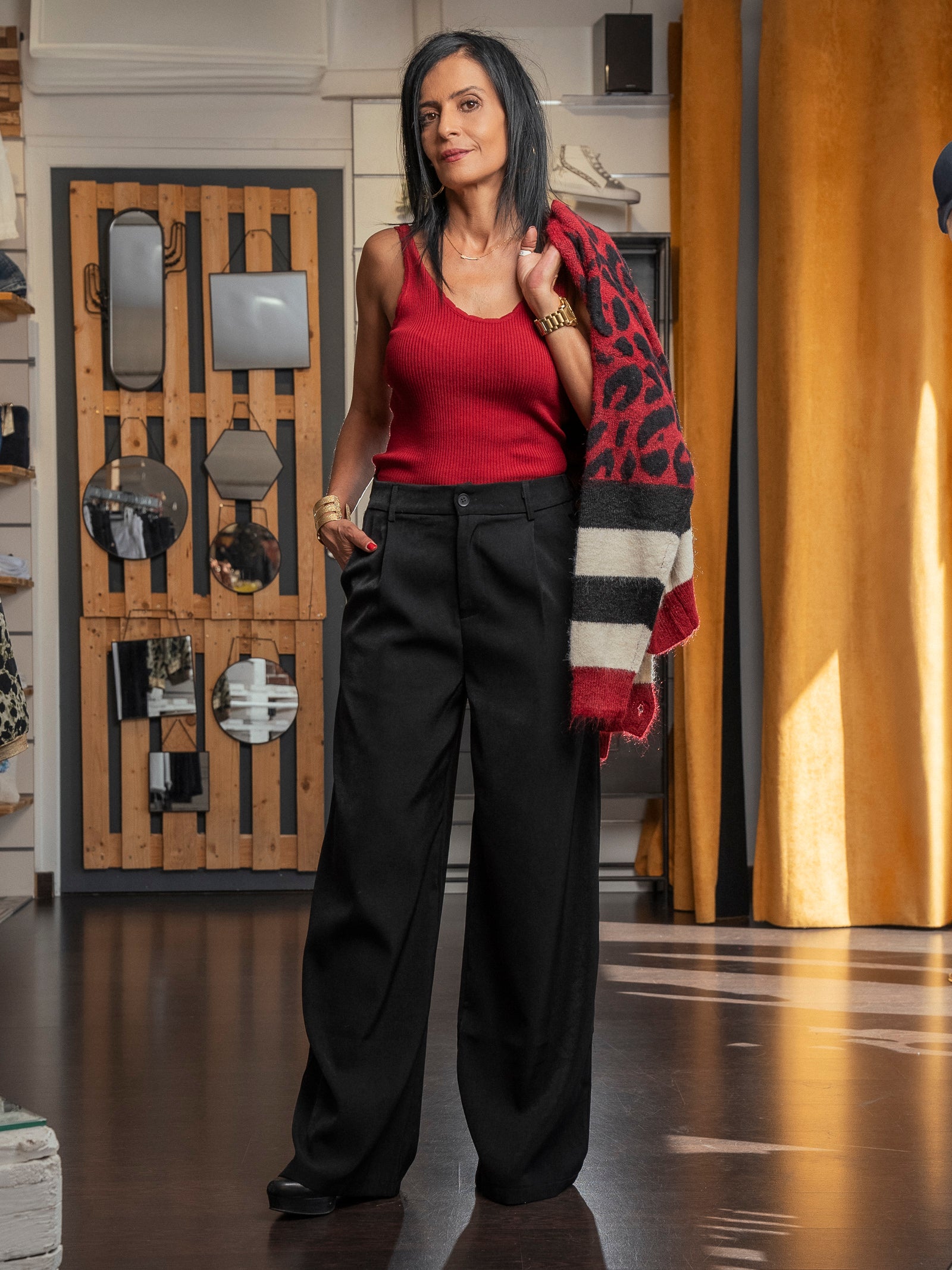 Le pantalon Imane se décline dans une teinte noire, parfaite pour apporter une touche d'élégance à votre garde-robe. Avec sa coupe droite et flatteuse, Imane se porte aussi bien au bureau qu’en soirée, offrant un look chic et contemporain.